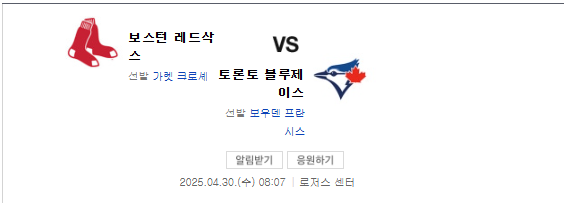 2025년 4월 30일, 보스턴 레드삭스와 토론토 블루제이스의 경기가 펼쳐집니다. 이 경기는 메이저리그에서 중요한 위치를 차지하고 있으며, 두 팀 모두 포스트시즌 진출을 위해 필사적인 경쟁을 벌이고 있습니다. 팬들은 이 경기를 통해 팀의 현재 상태와 향후 전망을 가늠할 수 있을 것입니다.