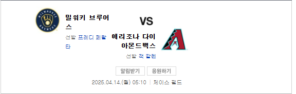 4월14일 밀워키 브루어스 애리조나 다이아몬드백스/ 콜로라도 로키스 샌디에이고 파드리스/ 시카고 컵스 LA 다저스 경기 분석 및 경기 예측을 소개하고자 합니다.