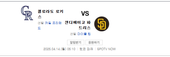 이번 경기는 콜로라도 로키스의 홈구장인 쿠어스 필드에서 열리며, 샌디에이고 파드리스가 원정으로 나섭니다. 두 팀 모두 이번 시즌에 대한 기대가 큰 상황이며, 특히 샌디에이고 파드리스는 최근 상승세를 타고 있습니다.