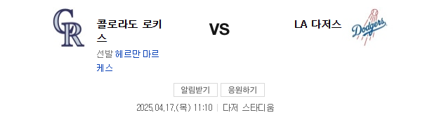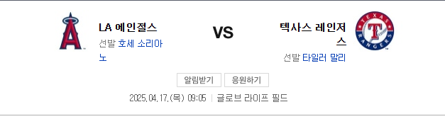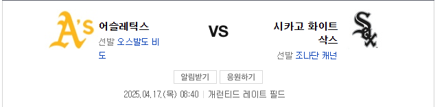 2025년4월17일 어슬레틱스 시카고 화이트삭스/ LA 에인절스 텍사스 레인저스/콜로라도 로키스 LA 다저스 경기 분석 및 경기 예측을 소개하고자 합니다.