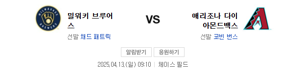 이번 경기는 밀워키 브루어스의 홈구장인 밀러 파크에서 열리며, 애리조나 다이아몬드백스와의 맞대결입니다. 두 팀 모두 시즌 초반부터 좋은 성적을 내고 있어, 팬들의 관심이 집중되고 있습니다. 특히, 밀워키는 강력한 투수진을 보유하고 있어 기대가 큽니다.