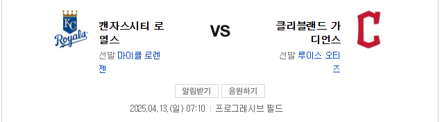 4월13일 캔자스시티 로열스 클리블랜드 가디언스/피츠버그 파이리츠 신시내티 레즈/애틀랜타 브레이브스 탬파베이 레이스 경기 분석 및 경기 예측을 소개하고자 합니다.