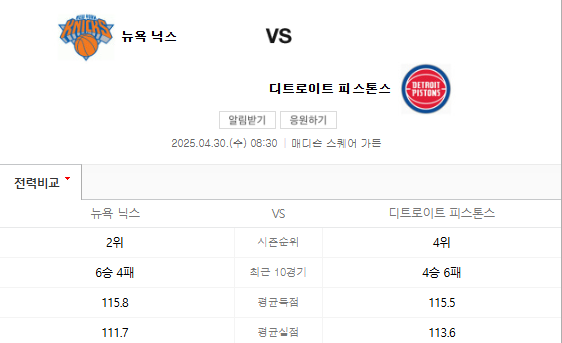 2025년4월30일 인디애나 페이서스 밀워키 벅스/2025년4월30일 뉴욕 닉스 디트로이트 피스톤스/2025년4월30일 보스턴 셀틱스 올랜도 매직/2025년4월30일 덴버 너게츠 LA 클리퍼스 경기 분석 및 경기 예측을 소개하고자 합니다.