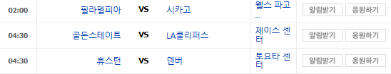 4월14일 필라델피아 세븐티식서스 시카고 불스/ 골든스테이트 워리어스 LA 클리퍼스 /휴스턴 로케츠 덴버 너게츠 경기 분석 및 경기 예측을 소개하고자 합니다.