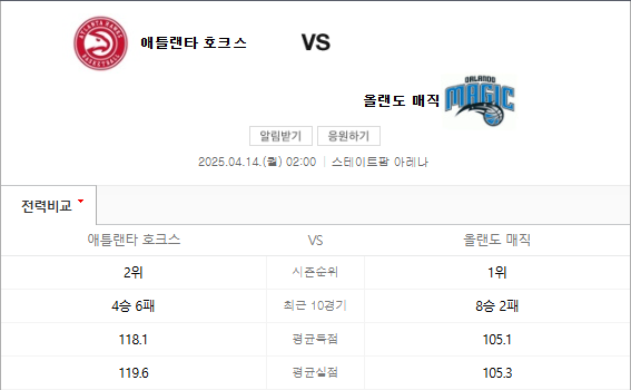 4월14일 애틀랜타 호크스 올랜도 매직/브루클린 네츠 뉴욕 닉스/ 클리블랜드 캐벌리어스 인디애나 페이서스 경기 분석 및 경기 예측을 소개하고자 합니다.