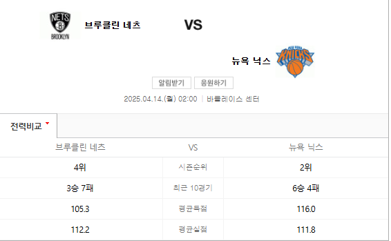 브루클린 네츠와 뉴욕 닉스의 최근 성적