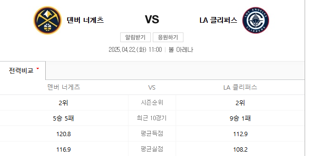 2025년4월22일 뉴욕 닉스 디트로이트 피스톤스/덴버 너게츠 LA 클리퍼스 경기 분석 및 경기 예측을 소개하고자 합니다.