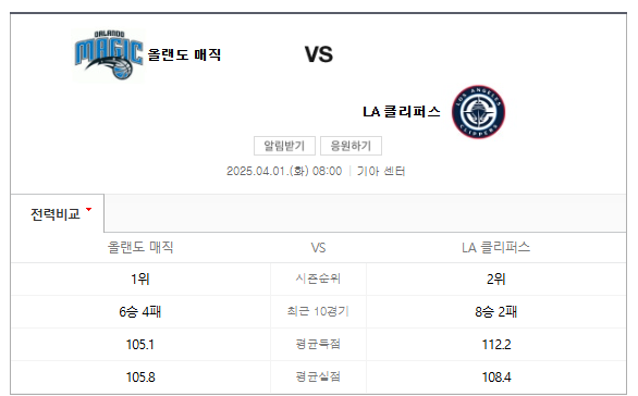 NBA 4월1일 올랜도 매직 LA 클리퍼스 경기 분석/스포츠 분석