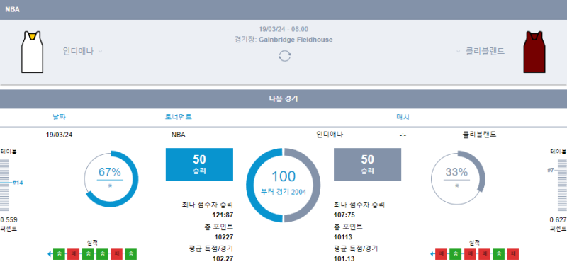 이번 경기는 인디애나 페이서스의 홈구장인 게인브리지 필드하우스에서 열립니다. 두 팀 모두 플레이오프 진출을 위해 중요한 경기를 치르게 되며, 팬들의 열띤 응원이 예상됩니다. 인디애나 페이서스는 최근 상승세를 타고 있으며, 클리블랜드 캐벌리어스는 강력한 전력을 자랑하고 있습니다.