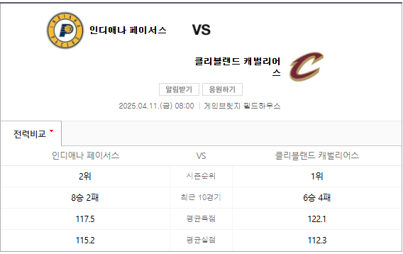 인디애나 페이서스와 클리블랜드 캐벌리어스의 경기가 2025년 4월 11일에 예정되어 있습니다. 이번 경기는 NBA 팬들에게 큰 기대를 모으고 있으며, 두 팀의 성적과 선수들의 컨디션을 분석해보겠습니다. 🏀