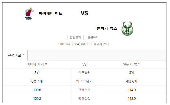 2025년 4월 6일, NBA 정규 시즌의 중요한 경기가 마이애미 히트와 밀워키 벅스 사이에서 진행됩니다. 두 팀 모두 플레이오프 진출을 위해 중요한 순간을 맞이하고 있습니다. 이번 경기는 마이애미의 홈구장인 FTX 아레나에서 열리며, 팬들의 큰 관심을 받고 있습니다. 이번 시즌 두 팀 모두 강력한 전력을 갖추고 있어, 많은 이들이 이 경기를 기다리고 있습니다.