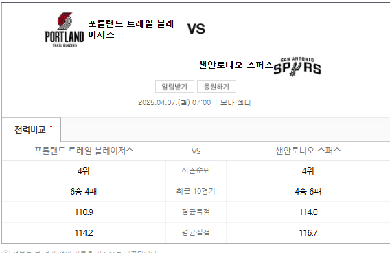 이번 경기는 2025년 4월 7일 오후 7시에 포틀랜드의 모다 센터에서 열립니다. 두 팀 모두 이번 시즌 좋은 성적을 내고 있어, 팬들은 더욱 기대가 큽니다. 특히, 포틀랜드는 홈에서의 강한 모습을 보여주고 있어, 이번 경기를 통해 연승을 이어가고자 할 것입니다.