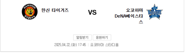 2025년 4월 22일 한신 타이거즈 요코하마 DeNA베이스타스/ 야쿠르트 스왈로즈 히로시마 도요 카프/ 오릭스 버팔로스 소프트뱅크 호크스 경기 분석 및 경기 예측을 소개하고자 합니다.