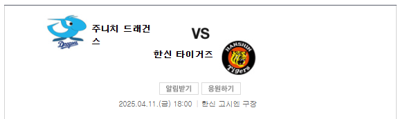 [NPB 경기]2025년4월11일 주니치 드래건스 한신 타이거즈/오릭스 버팔로스 라쿠텐 골든이글스 경기 분석