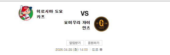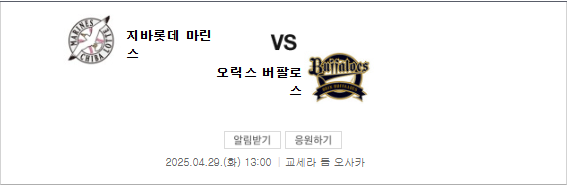 [NPB 프로야구] 2025년4월29일 지바롯데 마린스 오릭스 버팔로스/2025년4월29일 요코하마 DeNA베이스타스 야쿠르트 스왈로즈/2025년4월29일 히로시마 도요 카프 요미우리 자이언츠