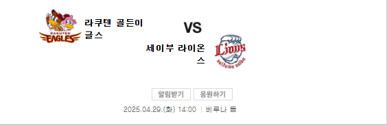 2025년 4월 29일, 일본 프로야구(NPB)에서 라쿠텐 골든이글스와 세이부 라이온스의 맞대결이 펼쳐집니다. 이 경기는 양 팀 모두에게 중요한 의미를 가지며, 팬들의 기대가 큽니다.