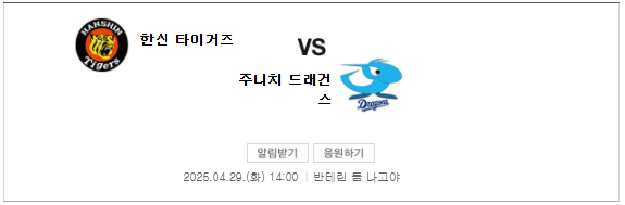 2025년 4월 29일, 일본 프로야구(NPB)에서 한신 타이거즈와 주니치 드래건스의 맞대결이 펼쳐집니다. 이 경기는 일본 효고현의 한신 고시엔 구장에서 열리며, 양 팀 모두 팬들의 많은 기대를 받고 있습니다.