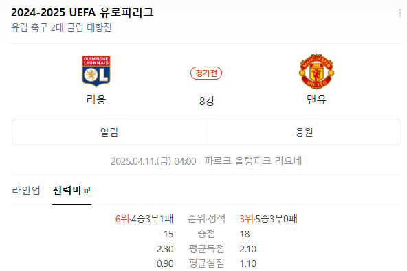 2025년 4월 11일, 올랭피크 리옹과 맨체스터 유나이티드의 경기 분석 및 예측